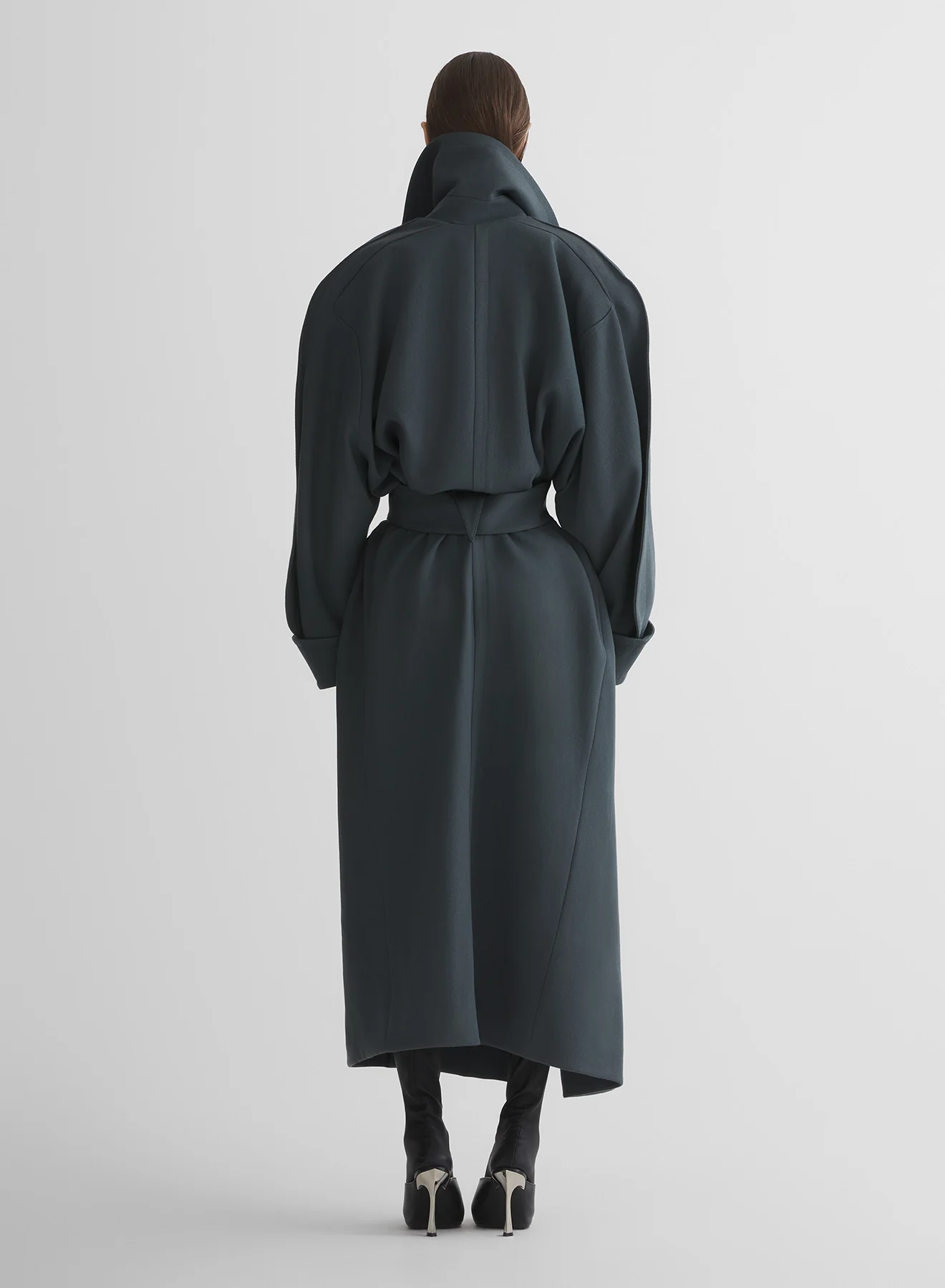 - Fitted asymmetric trench coat in soft wool